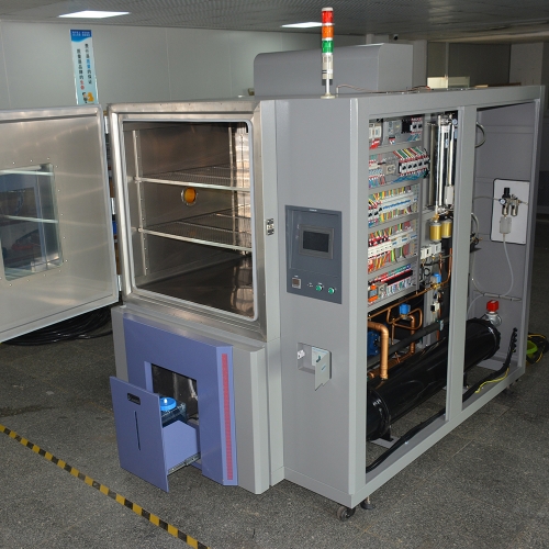 快速溫變試驗箱,又稱溫變試驗箱、快溫變試驗箱、快速溫濕度變化試驗箱、ESS環境應力篩選試驗箱,適用于電工、電子、儀器儀表及其它產品、零部件及材料在快速高低溫交變濕熱環境下貯存、運輸、使用時的環境適應性試驗,以及溫度變化試驗。