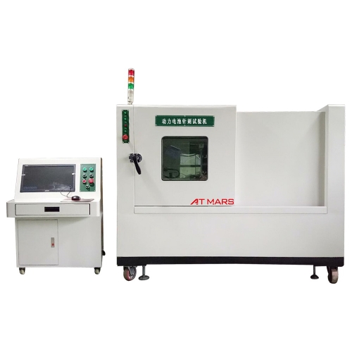 動力電池針刺試驗機(jī)適用于模擬各類電池在運(yùn)輸、儲存及使用過程中受到針刺情況。針刺試驗應(yīng)在20℃±5℃的環(huán)境溫度下進(jìn)行,將接有熱電偶的電池(熱電偶的觸點(diǎn)固定在電池大表面上)置于通風(fēng)櫥中,用直徑6~10mm的無蝕銹鋼針以10mm/s~40mm/s的速度刺穿電池最大表面的幾何中心位置,保持設(shè)定的時間并觀察其測試結(jié)果,電池不爆炸、不起火為合格。